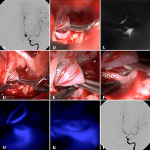In this case, traditional DSA provided a broad understanding of the vascular malformation but failed to capture the fine details of the abnormal vessels. With the employment of an endoscope-integrated ICG system, surgeons could directly observe the twisted and intertwined small vessels that were contributing to residual blood flow. Even when DSA did not immediately show the remnant flow within the aneurysm, the endoscopic view revealed faint, lingering signals that were critical to ensuring complete shutdown of the abnormal shunt.